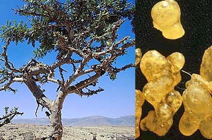 In ETIOPIA ne crescono principalmente due generi, la Boswelia (in arabo incenso) e la Commyphora (da dove proviene la famosa mirra). La produzione delle resine avviene o per essudazione spontanea dalla pianta, o tramite un metodico processo d’incisioni sul tronco , dal quale comincia ad essudare una sorta di lattice. Dopo circa un mese la gommoresine è sufficientemente indurita da essere raccolta. La raccolta dell’incenso risulta esser un lavoro molto importante per i contadini e i pastori dediti a a questa attività, garantendo lor un reddito anche nel periodo della stagione secca, in cui è quasi impossibile praticare l’agricoltura. Svolge inoltre un ruolo fondamentale nella preservazione del suolo dalla desertificazione.